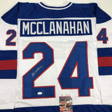 Autographed/Signed Rob McClanahan White Team USA Miracle On Ice 1980 Olympics Hockey Jersey JSA COA
