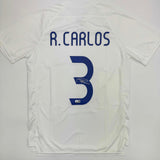 Autographed/Signed Roberto Carlos Real Madrid White Soccer Jersey Beckett BAS COA