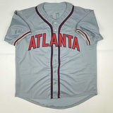 Autographed/Signed Ronald Acuna Jr. Atlanta Grey Baseball Jersey JSA COA