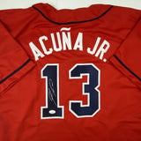 Autographed/Signed Ronald Acuna Jr. Atlanta Red Baseball Jersey JSA COA