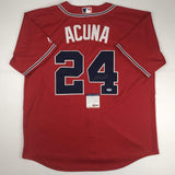 Autographed/Signed Ronald Acuna Jr. Atlanta Red Baseball Jersey PSA/DNA COA