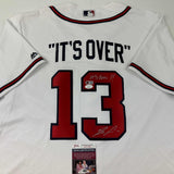 Autographed/Signed Ronald Acuna Jr. It's Over Majestic Atlanta Braves White Baseball Jersey JSA COA