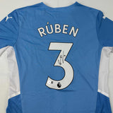 Autographed/Signed Ruben Dias Manchester City Blue Soccer Futbol Jersey Beckett BAS COA