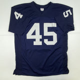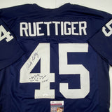 Autographed/Signed Rudy Ruettiger Hand Drawn Play Notre Dame Blue College Football Jersey JSA COA