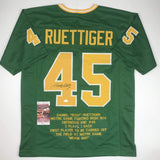 Autographed/Signed Rudy Ruettiger Notre Dame Green Stat College Football Jersey JSA COA