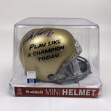 Autographed/Signed Rudy Ruettiger Play Like A Champion Today Notre Dame Irish Football Mini Helmet JSA COA