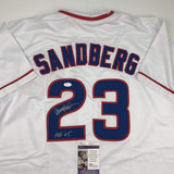 Autographed/Signed Ryne Sandberg HOF 05 Chicago White Baseball Jersey JSA COA