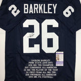 Autographed/Signed Saquon Barkley Penn State Blue Stat College Football Jersey JSA COA