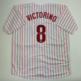 Autographed/Signed Shane Victorino Philadelphia Pinstripe Baseball Jersey PSA COA