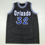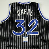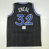 Autographed/Signed Shaquille Shaq O'Neal Orlando Black Pinstripe Basketball Jersey Beckett BAS COA