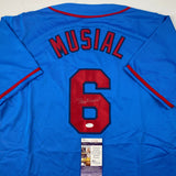 Autographed/Signed Stan Musial St. Louis Blue Baseball Jersey JSA COA
