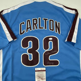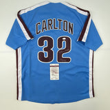 Autographed/Signed Steve Carlton Lefty Philadelphia Retro Blue Baseball Jersey JSA COA