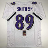 Autographed/Signed Steve Smith Sr. Baltimore White Football Jersey JSA COA