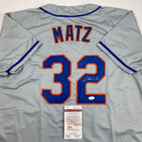 Autographed/Signed Steven Matz New York Grey Baseball Jersey JSA COA