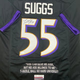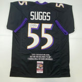Autographed/Signed Terrell Suggs Baltimore Black Quote Football Jersey JSA COA