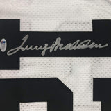 Autographed/Signed Terry Bradshaw Pittsburgh White Football Jersey Beckett BAS COA