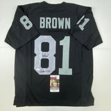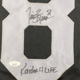 Autographed/Signed Tim Brown Raider 4 Life Oakland Black Football Jersey JSA COA