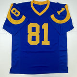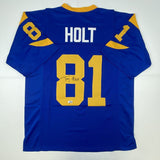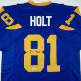 Autographed/Signed Torry Holt St. Louis Retro Blue Football Jersey Beckett BAS COA