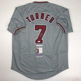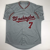 Autographed/Signed Trea Turner Washington Grey Baseball Jersey JSA COA