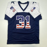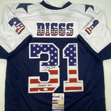 Autographed/Signed Trevon Diggs America's Team Dallas Blue Football Jersey JSA COA