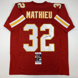 Autographed/Signed Tyrann Mathieu Kansas City Red Football Jersey JSA COA