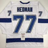 Autographed/Signed Victor Hedman Tampa Bay White Hockey Jersey JSA COA