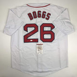 Autographed/Signed Wade Boggs Boston White Baseball Jersey JSA COA