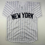 Autographed/Signed Wade Boggs New York Pinstripe Baseball Jersey Beckett BAS COA
