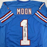 Autographed/Signed Warren Moon Houston Blue Football Jersey GTSM COA Holo Only