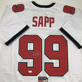 Autographed/Signed Warren Sapp Tampa Bay White Football Jersey JSA COA