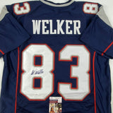 Autographed/Signed Wes Welker New England Blue Football Jersey JSA COA