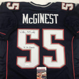 Autographed/Signed Willie McGinest 3x SB Champ New England Blue Football Jersey JSA COA