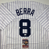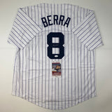 Autographed/Signed Yogi Berra New York Pinstripe Baseball Jersey JSA COA