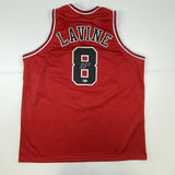 Autographed/Signed Zach LaVine Chicago Red Basketball Jersey Beckett BAS COA