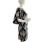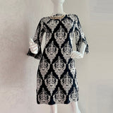 Experience the thrill of the Boat Neck Slashed Sleeve Sheath! This stunning shift dress is crafted from embroidered cotton, featuring medallion motifs for added charm. With a bold boat neck and playful slashed sleeves, this dress is sure to make a statement at any spring or summer event. Take a risk and rock this daring piece!