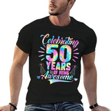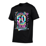 Celebrating 50 Year Of Being Awesome With Tie-dye Graphic Fade-proof Color T-Shirt