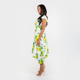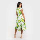 CN7177 Ruffled Nkline Sharkbite Hem Dress