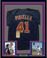 Framed Autographed/Signed Lou Piniella 35x39 Chicago Blue Baseball Jersey JSA COA