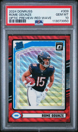 Graded 2024 Panini Donruss Rome Odunze #309 Optic Preview Red Wave Rookie RC Football Card PSA 10 Gem Mint