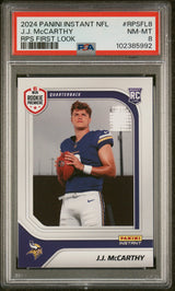 Graded 2024 Panini Instant NFL JJ McCarthy #RPSFL8 RPS First Look Rookie RC Football Card PSA 8 Near Mint