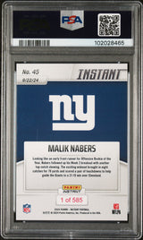 Graded 2024 Panini Instant NFL Malik Nabers #45 Rookie RC Football Card PSA 9 Mint
