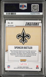 Graded 2024 Panini Instant NFL Spencer Rattler #84 Rookie RC Football Card PSA 10 Gem Mint