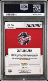 Graded 2024 Panini Instant WNBA Caitlin Clark #103 Rookie RC Basketball Card PSA 9 Mint