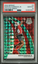 Graded 2024 Panini Mosaic Marvin Harrison Jr #2 Elevate Green Rookie RC Football Card PSA 10 Gem Mint