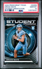 Graded 2024 Panini Prizm Draft Picks Drake Maye #SODM Student Orientation Rookie RC Football Card PSA 10 Gem Mint