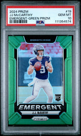 Graded 2024 Panini Prizm JJ McCarthy #19 Emergent Green Rookie RC Football Card PSA 10 Gem Mint