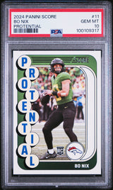 Graded 2024 Panini Score Bo Nix #11 Protential Rookie RC Football Card PSA 10 Gem Mint