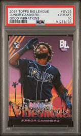 Graded 2024 Topps Big League Junior Caminero #GV25 Good Vibrations Rookie RC Baseball Card PSA 10 Gem Mint