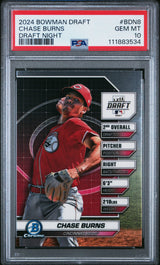 Graded 2024 Topps Bowman Draft Chase Burns #BDN8 Draft Night Rookie RC Baseball Card PSA 10 Gem Mint