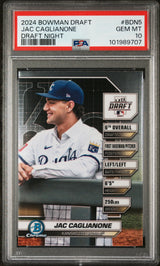 Graded 2024 Topps Bowman Draft Jac Caglianone #BDN5 Draft Night Rookie RC Baseball Card PSA 10 Gem Mint